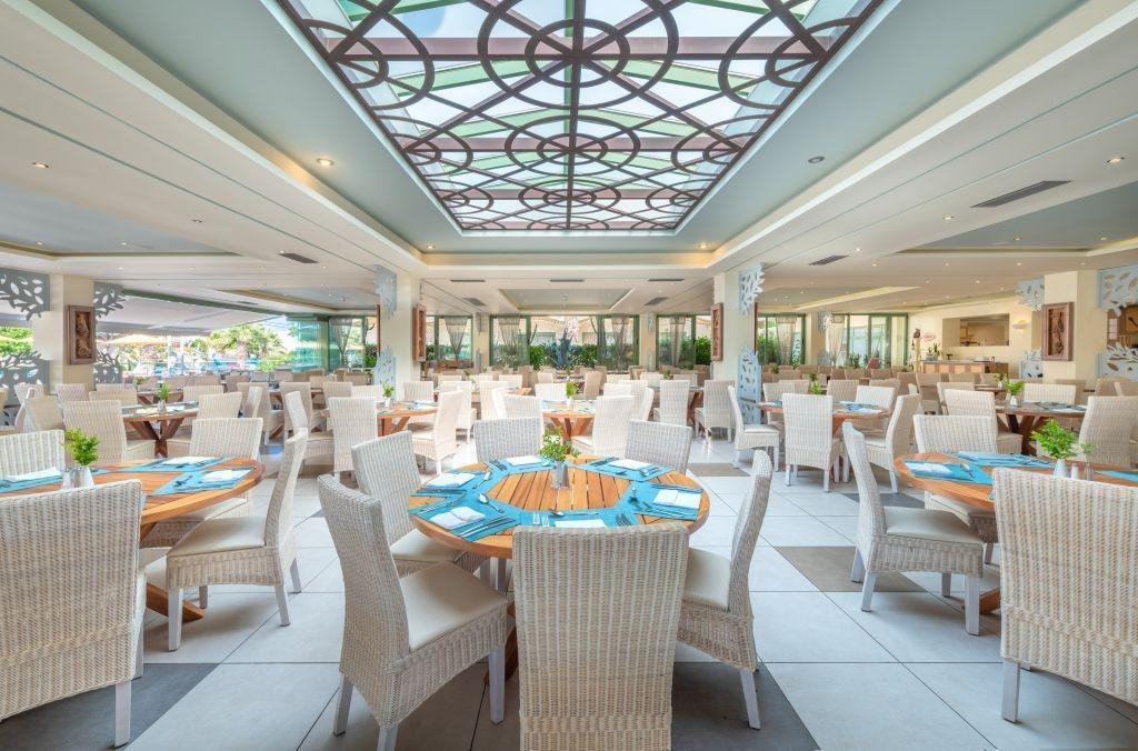 214 izieb rozdelených medzi hlavnú budovu a niekoľko vedľajších budov v záhrade. Vstupná hala s recepciou, hlavná reštaurácia, reštaurácia à a la carte, bar, TV/sat miestnosť, minimarket. Vonkajší bazén s vírivkou, detský bazén, slnečná terasa, ležadlá a slnečníky zadarmo, Aquapark Star Beach Waterpark. |