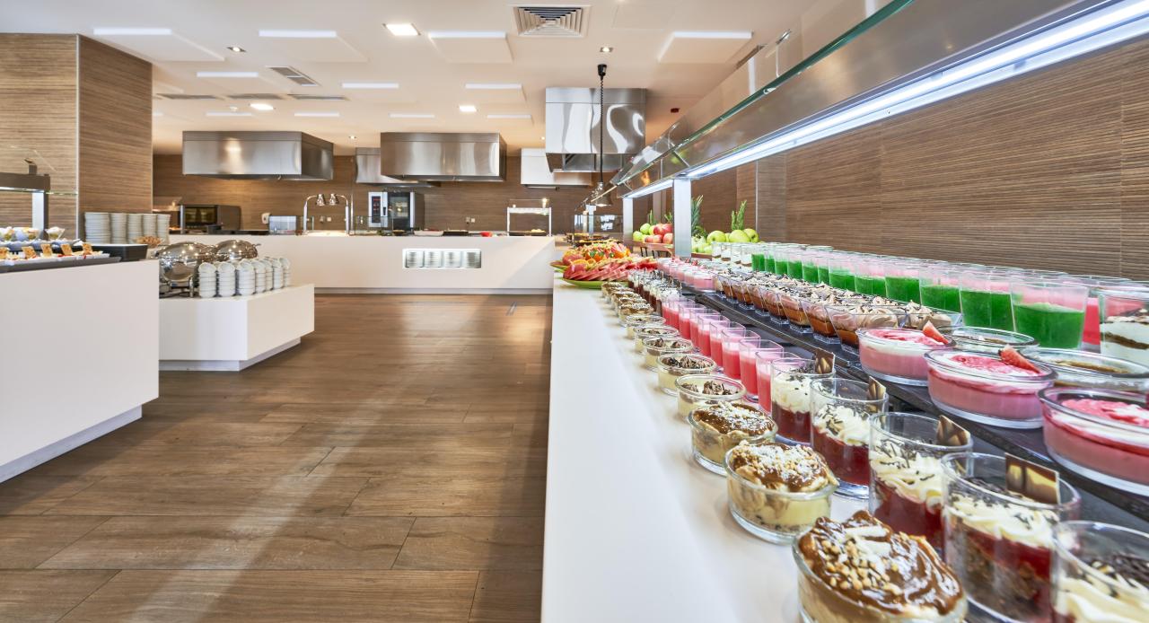 287 izieb, 9 poschodí, vstupná hala s recepciou, výťahy, reštaurácia, bar, bazén, bar pri bazéne, terasa s lehátkami a slnečníkmi zdarma. |